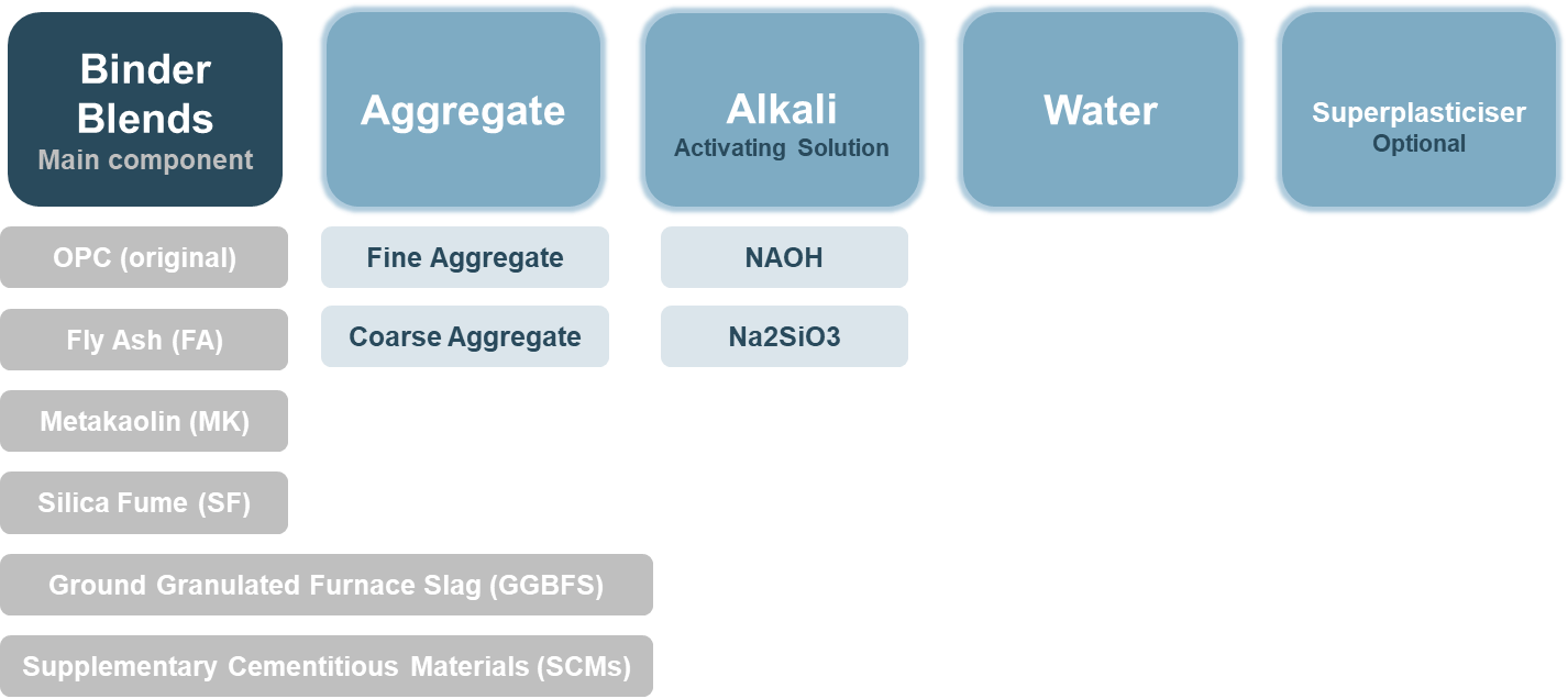 A promising area of research relates to the use of alkali-activated concrete (AAC) in place of ordinary Portland cement concrete (OPCC). The mechanical properties of AAC are similar to OPCC, with the added potential of being more environmentally friendly. It is estimated that blended concrete could reduce CO2 emissions by approximately 13-22%.1