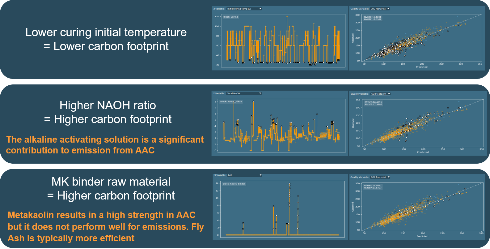 Run your own digital simulations to find out! Using a published dataset2, ProSensus has developed a predictive model with an R2 > 85% for CO2 footprint.