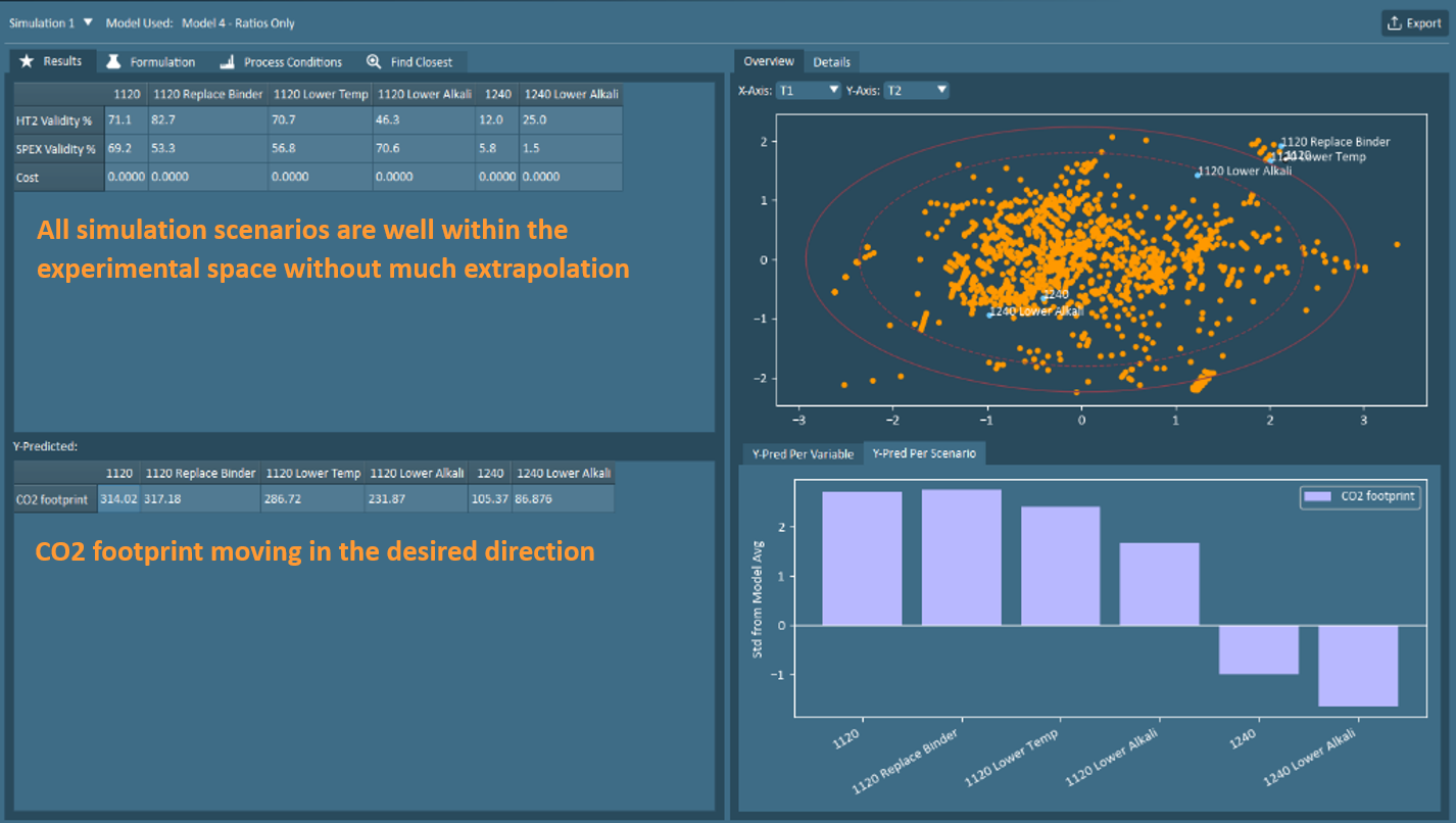 Once the results are reviewed with subject matter experts, the Simulation tool can be used to predict the outcome of new experiments with explainable AI, and ultimately reduce physical experimentation by testing all the “What if?” scenarios virtually.